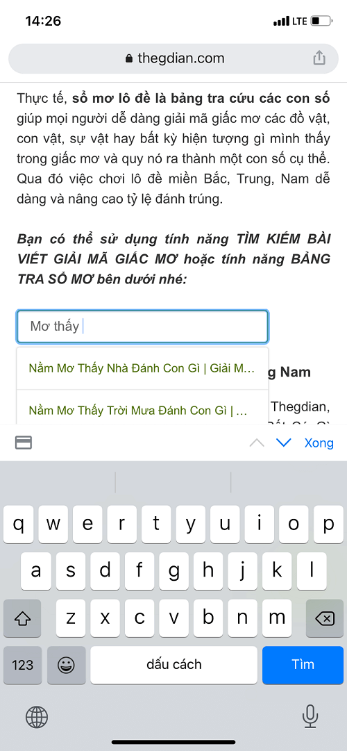 Tiếp đến bạn nhập những thứ bạn thấy trong giấc mơ để tìm bài viết (như trong ví dụ)